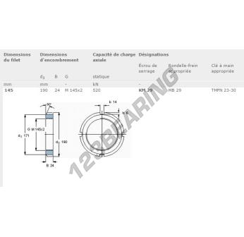 Ta nakrętka KM29-SKF posiada średnicę wewnętrzną 145 mm, średnicę zewnętrzną 190 mm oraz grubość 24 mm.