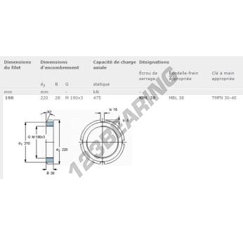Ta nakrętka KML38-SKF posiada średnicę wewnętrzną 190 mm, średnicę zewnętrzną 220 mm oraz grubość 28 mm.