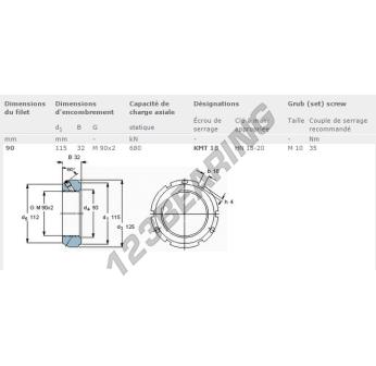 Ta nakrętka KMT18-SKF posiada średnicę wewnętrzną 90 mm, średnicę zewnętrzną 115 mm oraz grubość 32 mm.