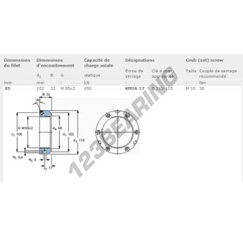 Ta nakrętka KMTA17-SKF posiada średnicę wewnętrzną 85 mm, średnicę zewnętrzną 102 mm oraz grubość 32 mm.