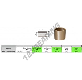 Tuleja Z Brązu, znana pod numerem referencyjnym BAI11.1125-14.2875-9.525 Ogólny, posiada średnicę wewnętrzną 11.1125 mm, średnicę zewnętrzną 14.2875 mm oraz długość 9.525 mm. Jest wykonana z .