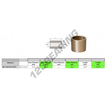 Tuleja Z Brązu, znana pod numerem referencyjnym BAI19.05-25.4-53.975 Ogólny, posiada średnicę wewnętrzną 19.05 mm, średnicę zewnętrzną 25.4 mm oraz długość 53.975 mm. Jest wykonana z .