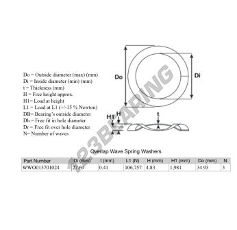 Podkładka Falista Z Nakładaniem o numerze referencyjnym OWSW-34.930-27.690-0.410-3 posiada średnicę wewnętrzną 27.69 mm oraz grubość 0.41 mm. Jest wykonana z materiału STAL.