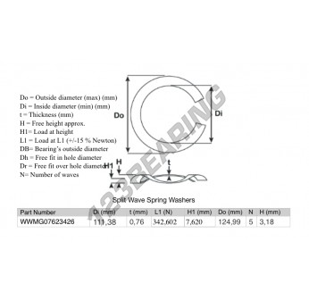 Podkładka Sprężynująca Falista Dzielona o numerze referencyjnym SWSW-124.99-111.38-0.76-5 posiada średnicę wewnętrzną 111.38 mm oraz grubość 0.76 mm. Jest wykonana z materiału STAL.