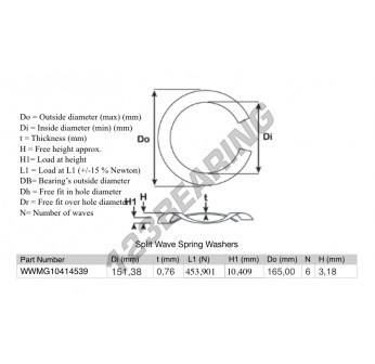 Podkładka Sprężynująca Falista Dzielona o numerze referencyjnym SWSW-165-151.38-0.76-6 posiada średnicę wewnętrzną 151.38 mm oraz grubość 0.76 mm. Jest wykonana z materiału STAL.