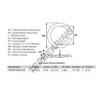 Podkładka Sprężynująca Falista Dzielona o numerze referencyjnym SWSW-177.80-164.59-0.76-7 posiada średnicę wewnętrzną 164.59 mm oraz grubość 0.76 mm. Jest wykonana z materiału STAL.