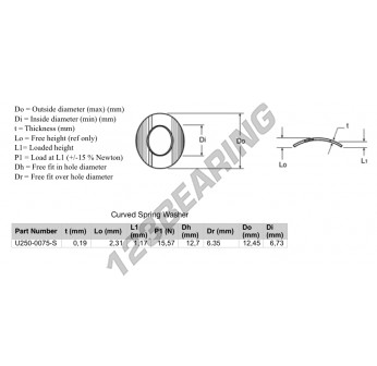 Zakrzywiona Podkładka Sprężynująca, znana pod numerem referencyjnym CSW-12.45-6.73-0.19-SS, posiada grubość 0.19 mm i jest wykonana z STAL NIERDZEWNA.