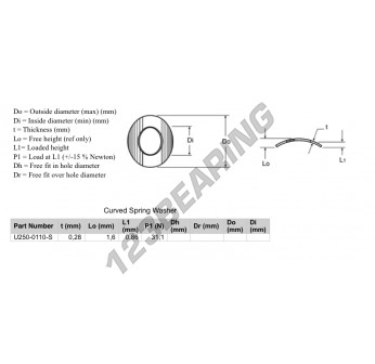 Zakrzywiona Podkładka Sprężynująca, znana pod numerem referencyjnym CSW-12.45-6.73-0.28-SS, posiada grubość 0.28 mm i jest wykonana z STAL NIERDZEWNA.