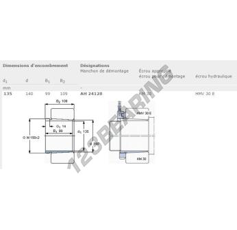 Tuleje Wciągane, znany pod numerem referencyjnym AH24128-SKF SKF, posiada średnicę wewnętrzną 135 mm, średnicę zewnętrzną 140 mm oraz grubość 99 mm.