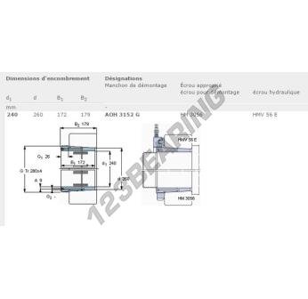 Tuleje Wciągane, znany pod numerem referencyjnym AOH3152G-SKF SKF, posiada średnicę wewnętrzną 240 mm, średnicę zewnętrzną 260 mm oraz grubość 172 mm.