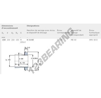 Tuleje Wciągane, znany pod numerem referencyjnym H3140-SKF SKF, posiada średnicę wewnętrzną 180 mm, średnicę zewnętrzną 250 mm oraz grubość 150 mm.