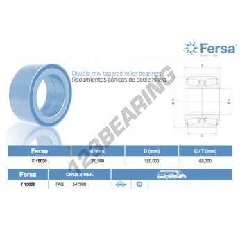 Łożysko Koła F15030-ASFERSA, Średnica wewnętrzna 70 mm, Średnica zewnętrzna 120 mm, Grubość 60 mm