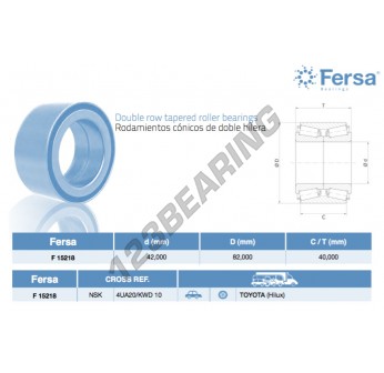 Łożysko Koła F15218-ASFERSA, Średnica wewnętrzna 42 mm, Średnica zewnętrzna 82 mm, Grubość 40 mm