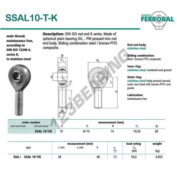 Główki Cięgieł Sa, znana pod numerem referencyjnym DSSAL10-T-K-DURBAL, marki DURBAL, posiada gwint o skoku oraz Gwint lewy, średnicę wewnętrzną 10 mm, średnicę zewnętrzną 28 mm oraz grubość 14 mm.