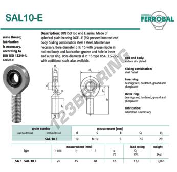 Główki Cięgieł Sa, znana pod numerem referencyjnym SAL10-E-DURBAL, marki DURBAL, posiada gwint o skoku oraz Gwint lewy, średnicę wewnętrzną 10 mm, średnicę zewnętrzną 29 mm oraz grubość 9 mm.