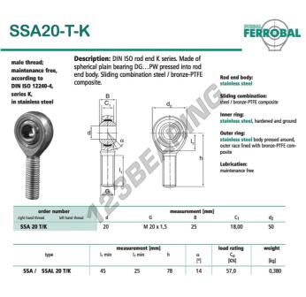Główki Cięgieł Sa, znana pod numerem referencyjnym SSA20-T-K-DURBAL, marki DURBAL, posiada gwint o skoku oraz Gwint prawy, średnicę wewnętrzną 20 mm, średnicę zewnętrzną 50 mm oraz grubość 25 mm.