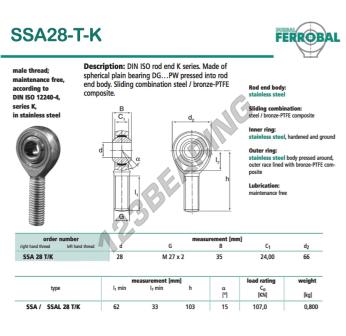 Główki Cięgieł Sa, znana pod numerem referencyjnym SSA28-T-K-DURBAL, marki DURBAL, posiada gwint o skoku oraz Gwint prawy, średnicę wewnętrzną 28 mm, średnicę zewnętrzną 66 mm oraz grubość 35 mm.