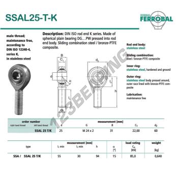 Główki Cięgieł Sa, znana pod numerem referencyjnym SSAL25-T-K-DURBAL, marki DURBAL, posiada gwint o skoku oraz Gwint lewy, średnicę wewnętrzną 25 mm, średnicę zewnętrzną 60 mm oraz grubość 31 mm.