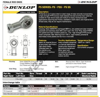 Główki Cięgieł Si, znana pod numerem referencyjnym FSL-M22-DUNLOP, marki DUNLOP, posiada średnicę wewnętrzną 22 mm, średnicę zewnętrzną 28 mm oraz grubość 20 mm.