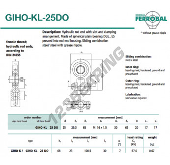 Główki Cięgieł Tapr, znana pod numerem referencyjnym GIHO-KL-25DO-DURBAL marki DURBAL, posiada średnicę wewnętrzną 25 mm, średnicę zewnętrzną 65 mm oraz grubość 17 mm.
