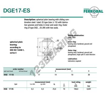 Łożyska Przegubowe Ge, znana pod numerem referencyjnym DGE17-ES-DURBAL, marki DURBAL, posiada średnicę wewnętrzną 17 mm, średnicę zewnętrzną 30 mm oraz grubość 10 mm.