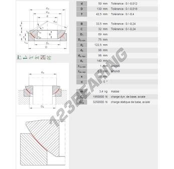 Łożyska Przegubowe Ge, znana pod numerem referencyjnym GE50AW-INA, marki INA, posiada średnicę wewnętrzną 50 mm, średnicę zewnętrzną 130 mm oraz grubość 42.5 mm.