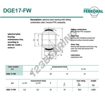 Łożysko Przegubowe Geew o numerze referencyjnym DGE17-FW-DURBAL, marki DURBAL, posiada średnicę wewnętrzną 17 mm, średnicę zewnętrzną 35 mm oraz grubość 12 mm.