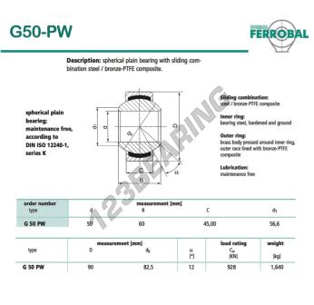 Łożysko Przegubowe Geew o numerze referencyjnym G50-PW-DURBAL, marki DURBAL, posiada średnicę wewnętrzną 50 mm, średnicę zewnętrzną 90 mm oraz grubość 45 mm.