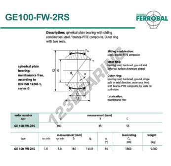 Łożysko Przegubowe Geew o numerze referencyjnym GE100-FW-2RS-DURBAL, marki DURBAL, posiada średnicę wewnętrzną 100 mm, średnicę zewnętrzną 160 mm oraz grubość 55 mm.