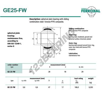 Łożysko Przegubowe Geew o numerze referencyjnym GE25-FW-DURBAL, marki DURBAL, posiada średnicę wewnętrzną 25 mm, średnicę zewnętrzną 47 mm oraz grubość 18 mm.