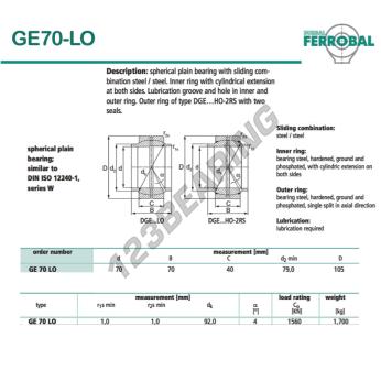 Łożysko Przegubowe Geg o numerze referencyjnym DGE70-LO-DURBAL DURBAL posiada średnicę wewnętrzną 70 mm, średnicę zewnętrzną 105 mm oraz grubość 40 mm.