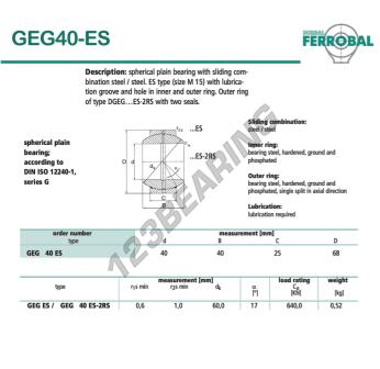 Łożysko Przegubowe Geg o numerze referencyjnym GEG40-ES-DURBAL DURBAL posiada średnicę wewnętrzną 40 mm, średnicę zewnętrzną 68 mm oraz grubość 25 mm.
