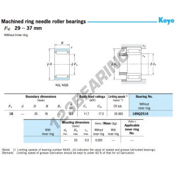 Łożysko Igiełkowe, znany pod numerem referencyjnym 18NQ2516-JTEKT, marki JTEKT, posiada średnicę wewnętrzną 18 mm, średnicę zewnętrzną 25 mm oraz grubość 16 mm.