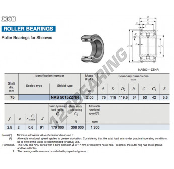 Łożysko Igiełkowe, znany pod numerem referencyjnym NAS5015-ZZ-NR-IKO, marki IKO, posiada średnicę wewnętrzną 75 mm, średnicę zewnętrzną 115 mm oraz grubość 54 mm.