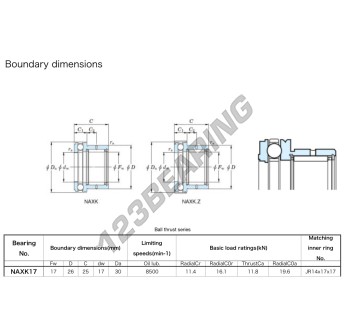 Łożysko Igiełkowe, znany pod numerem referencyjnym NAXK17-JTEKT, marki JTEKT, posiada średnicę wewnętrzną 17 mm, średnicę zewnętrzną 30 mm oraz grubość 25 mm.