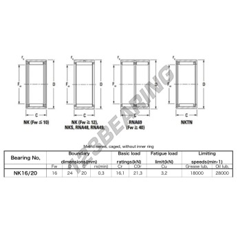 Łożysko Igiełkowe, znany pod numerem referencyjnym NK1620-JTEKT, marki JTEKT, posiada średnicę wewnętrzną 16 mm, średnicę zewnętrzną 24 mm oraz grubość 20 mm.