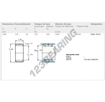 Łożysko Igiełkowe, znany pod numerem referencyjnym RNA4920-SKF, marki SKF, posiada średnicę wewnętrzną 115 mm, średnicę zewnętrzną 140 mm oraz grubość 40 mm.