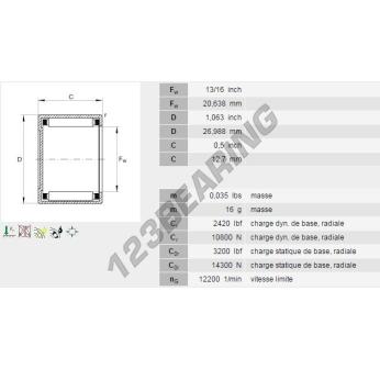 Łożysko Igiełkowe Typ Hk, znana pod numerem referencyjnym BCE138-INA, marki INA, posiada średnicę wewnętrzną 20.64 mm, średnicę zewnętrzną 26.99 mm oraz grubość 12.7 mm.