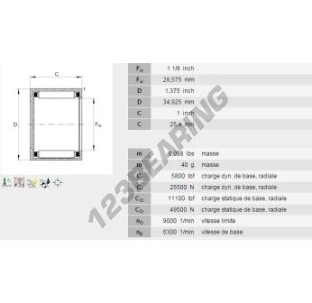 Łożysko Igiełkowe Typ Hk, znana pod numerem referencyjnym BCE1816-INA, marki INA, posiada średnicę wewnętrzną 28.58 mm, średnicę zewnętrzną 34.93 mm oraz grubość 25.4 mm.