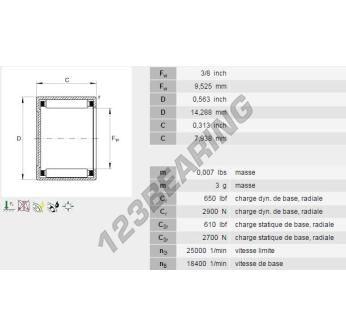 Łożysko Igiełkowe Typ Hk, znana pod numerem referencyjnym BCE65-INA, marki INA, posiada średnicę wewnętrzną 9.53 mm, średnicę zewnętrzną 14.29 mm oraz grubość 7.92 mm.