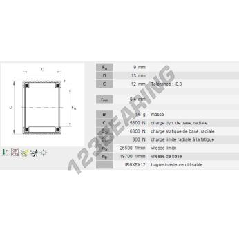 Łożysko Igiełkowe Typ Hk, znana pod numerem referencyjnym HK0912-B-INA, marki INA, posiada średnicę wewnętrzną 9 mm, średnicę zewnętrzną 13 mm oraz grubość 12 mm.