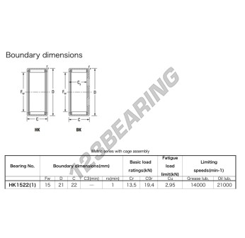 Łożysko Igiełkowe Typ Hk, znana pod numerem referencyjnym HK1522-JTEKT, marki JTEKT, posiada średnicę wewnętrzną 15 mm, średnicę zewnętrzną 21 mm oraz grubość 22 mm.