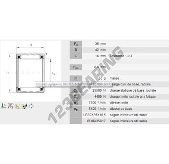 Łożysko Igiełkowe Typ Hk, znana pod numerem referencyjnym HK3516-B-INA, marki INA, posiada średnicę wewnętrzną 35 mm, średnicę zewnętrzną 42 mm oraz grubość 16 mm.