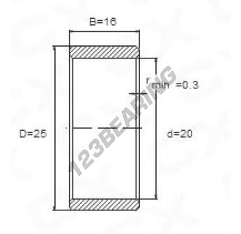 Wewnętrzna Bieżnia łożyska, znana pod numerem referencyjnym IR20X25X16 marki Ogólny, ma średnicę wewnętrzną 20 mm, średnicę zewnętrzną 25 mm oraz długość 16 mm.