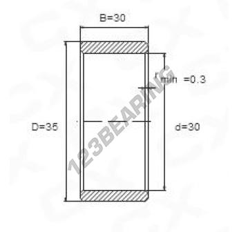 Wewnętrzna Bieżnia łożyska, znana pod numerem referencyjnym IR30X35X30 marki Ogólny, ma średnicę wewnętrzną 30 mm, średnicę zewnętrzną 35 mm oraz długość 30 mm.