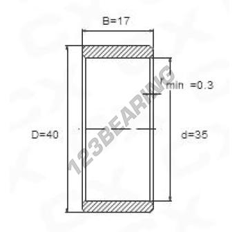 Wewnętrzna Bieżnia łożyska, znana pod numerem referencyjnym IR35X40X17 marki Ogólny, ma średnicę wewnętrzną 35 mm, średnicę zewnętrzną 40 mm oraz długość 17 mm.