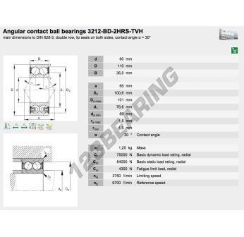 Łożysko Kulkowe, znane jako 3212-BD-2HRS-TVH-FAG FAG, ma średnicę wewnętrzną 60mm, średnicę zewnętrzną 110mm i grubość 36.5mm.