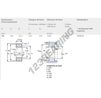 Łożysko Kulkowe, znane jako 3218-A-SKF SKF, ma średnicę wewnętrzną 90mm, średnicę zewnętrzną 160mm i grubość 52.4mm.