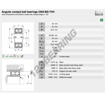 Łożysko Kulkowe, znane jako 3304-BD-TVH-FAG FAG, ma średnicę wewnętrzną 20mm, średnicę zewnętrzną 52mm i grubość 22.2mm.
