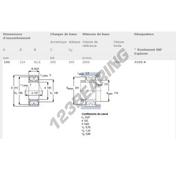 Łożysko Kulkowe, znane jako 3320-A-SKF SKF, ma średnicę wewnętrzną 100mm, średnicę zewnętrzną 215mm i grubość 82.6mm.